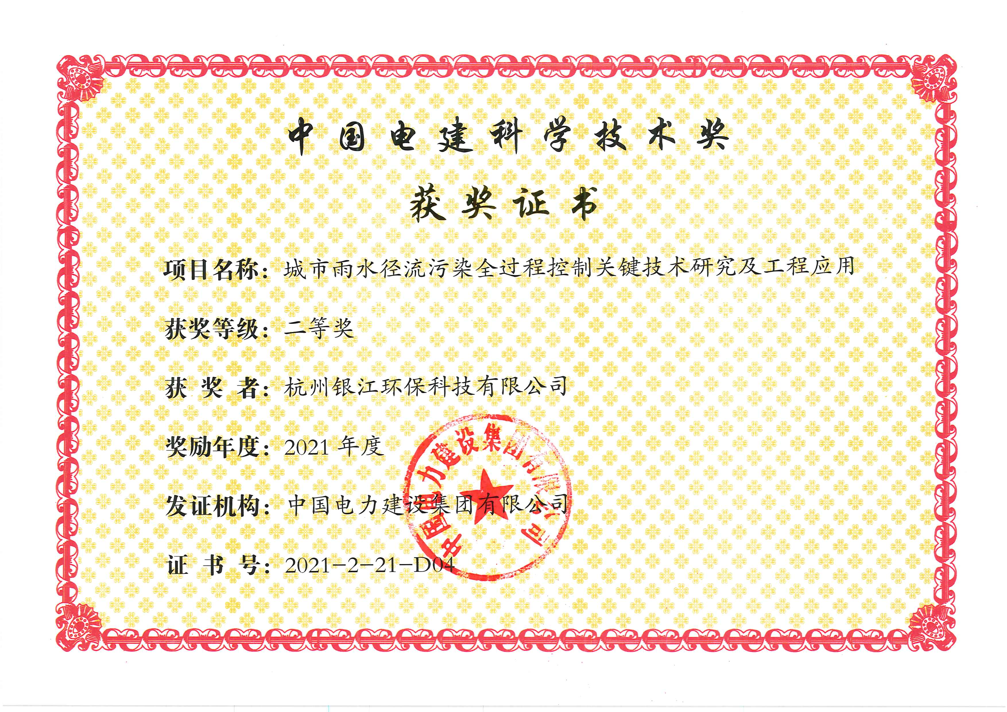 中國電建科學技術獎二等獎