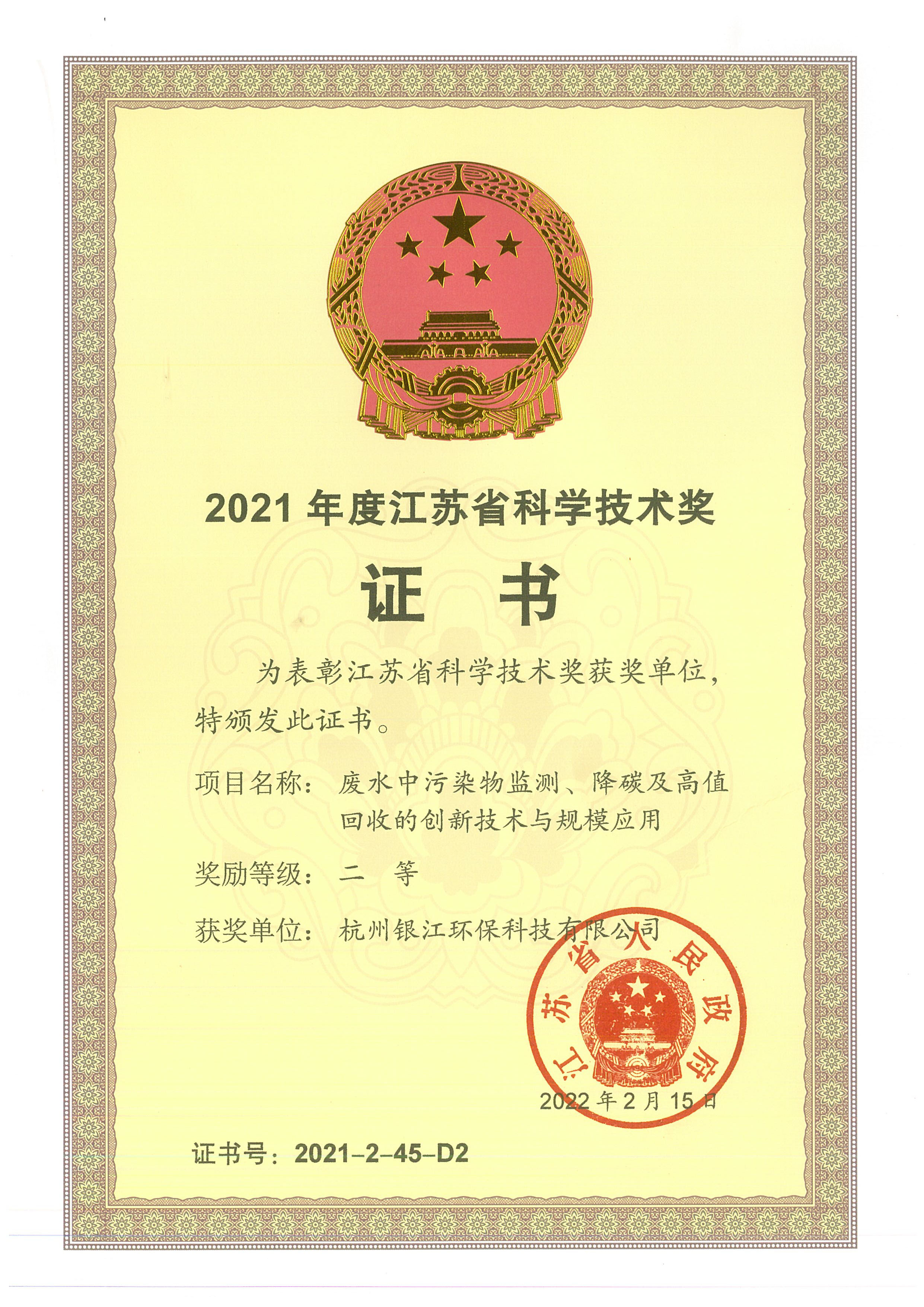城鎮水科技獎二等獎