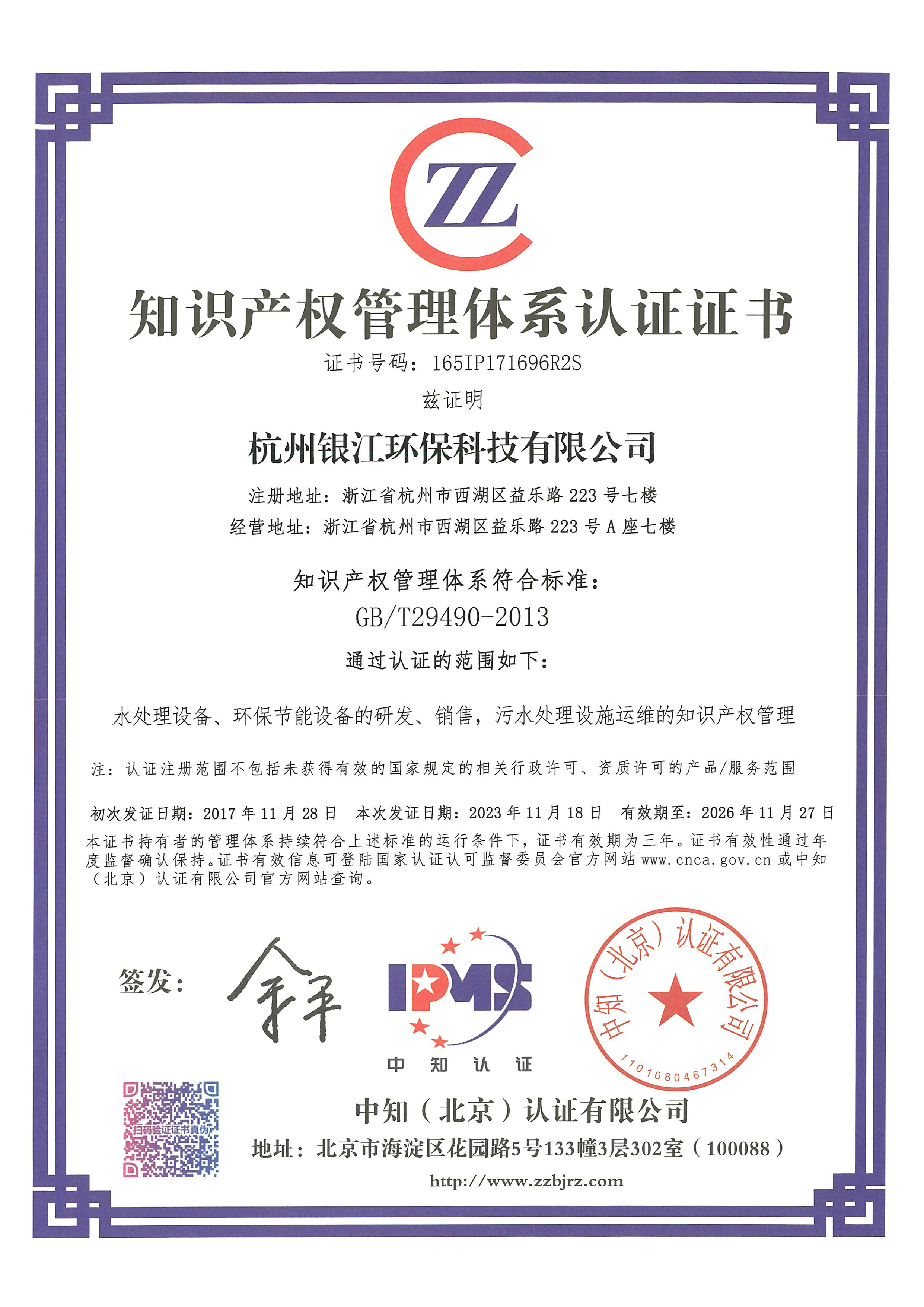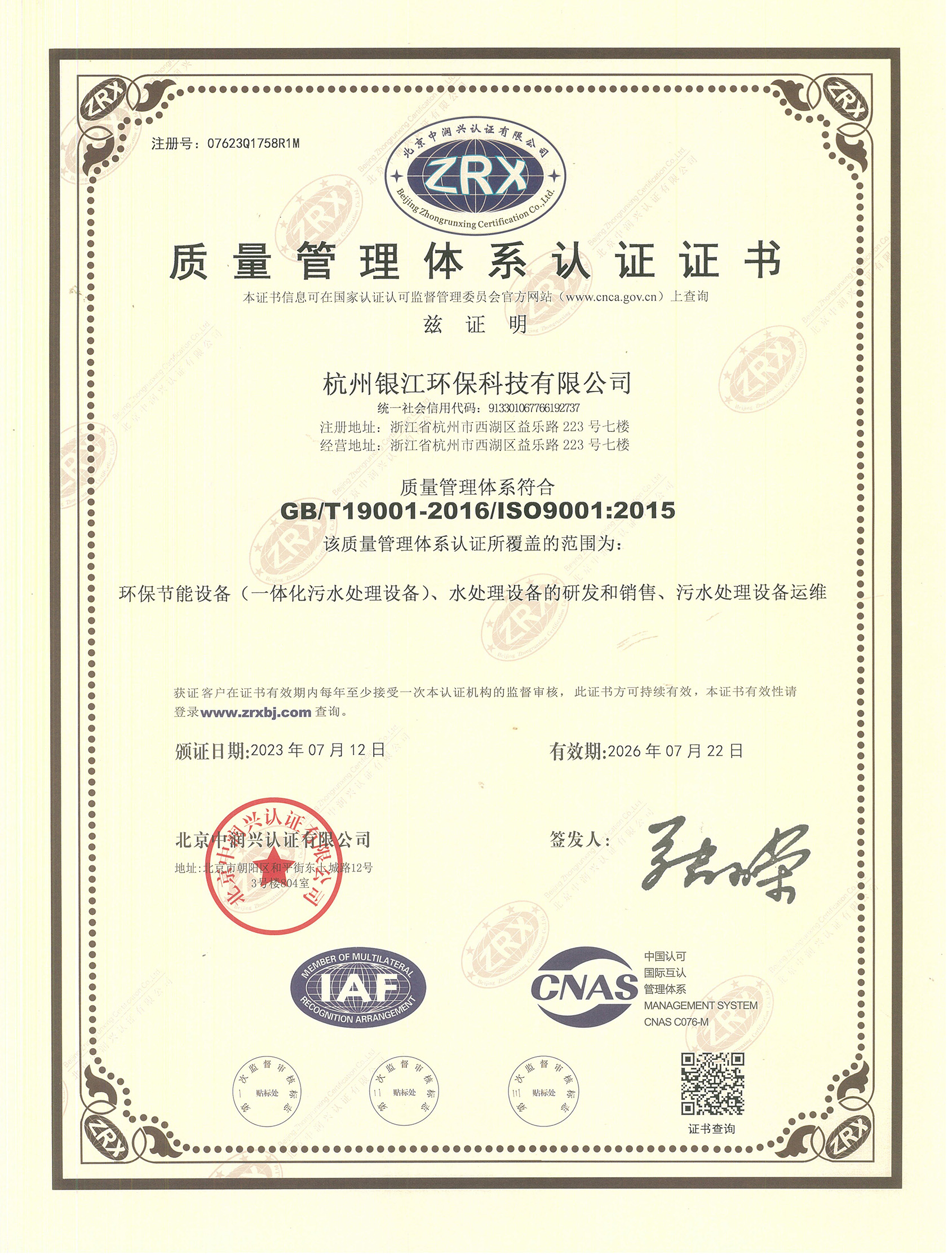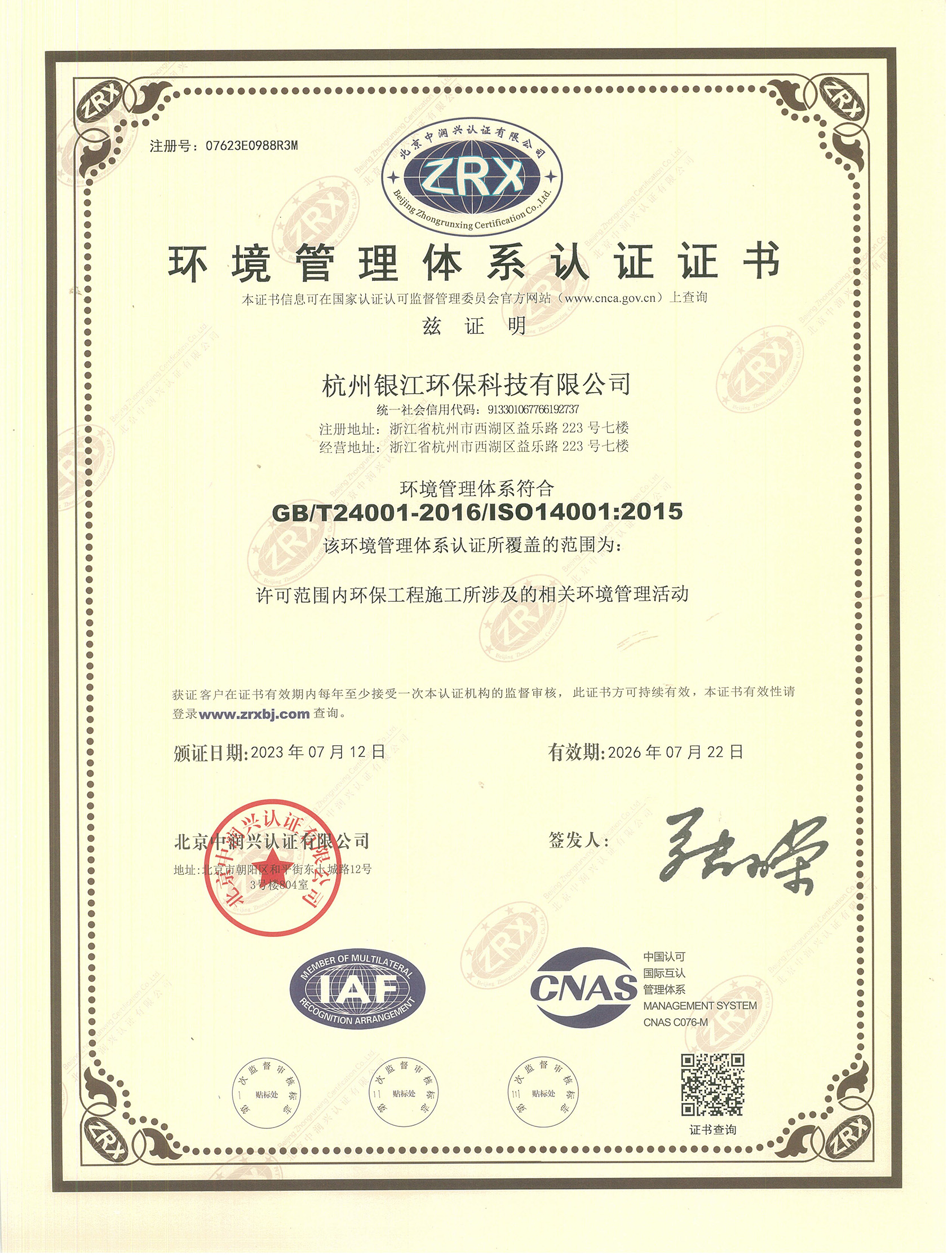 環境管理體系認證證書