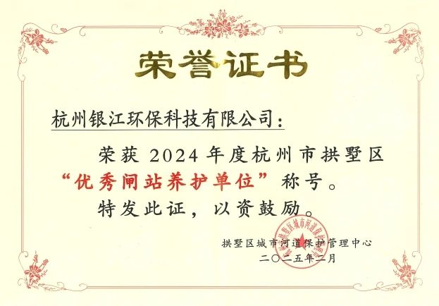 銀江環(huán)保運(yùn)維團(tuán)隊(duì)兢兢業(yè)業(yè)養(yǎng)護(hù)拱墅區(qū)閘站,榮獲2024年“優(yōu)秀閘站養(yǎng)護(hù)單位”稱號(hào)!
