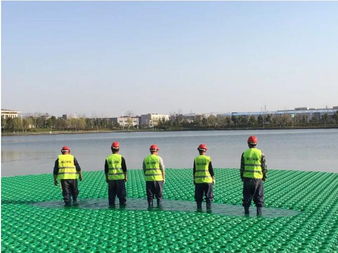 在彩蝶湖內部設置生態浮島約6000平方,其中大型彩蝶浮島總面積約為3500平方,其余圓形浮島共約2500平方,同時在彩蝶湖內設置12臺噴泉曝氣機,對彩蝶湖進行增氧曝氣,提升彩蝶湖整體景觀效果