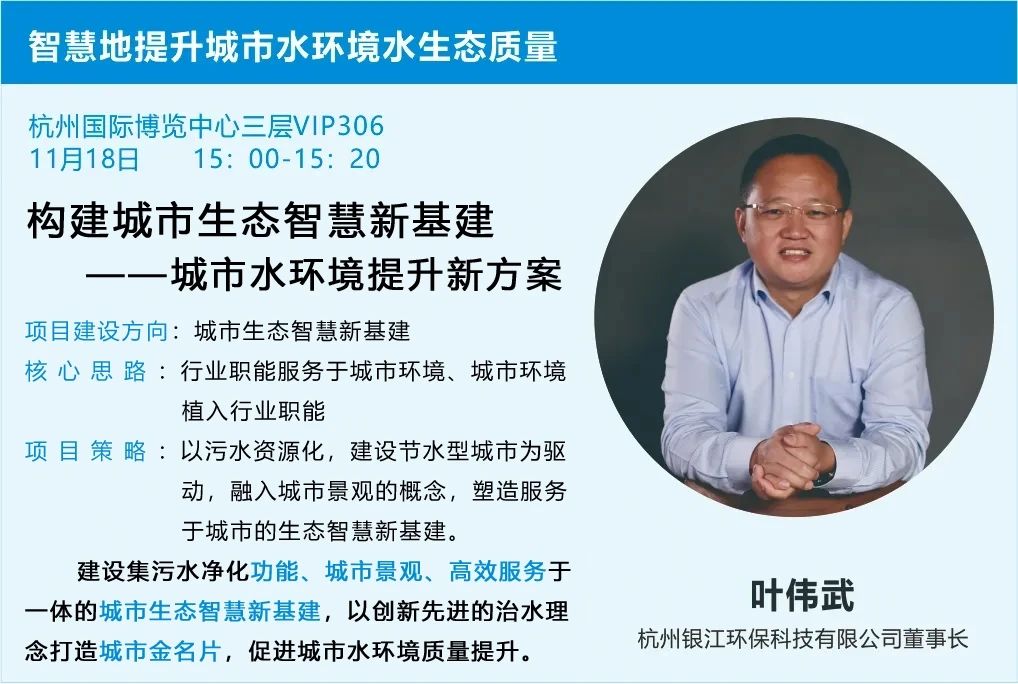 董事長(zhǎng)葉偉武應(yīng)邀將在智慧地提升城市水環(huán)境水生態(tài)質(zhì)量專題研討會(huì)上發(fā)表《構(gòu)建城市生態(tài)智慧新基建——城市水環(huán)境提升新方案》專題演講。