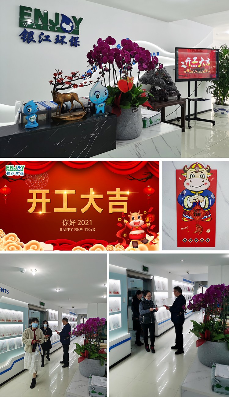 2021年大年初八,銀江環保開工第一天,董事長葉偉武一早來到公司迎接每一位到崗員工,為大家送上開門紅包和新年祝福。“新年快樂,大吉大利”、“開工大吉,牛氣沖天”……相互間的祝福聲此起彼伏。新年第一天,公司到崗率百分百,大家都回到了各自崗位,以奮斗的姿態確保開好局、起好步,力爭“開門紅”,擼起袖子加油干!