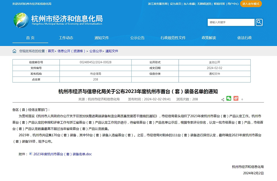 銀江環(huán)保水處理系統(tǒng)入選2023年度杭州市首臺(套)裝備發(fā)布日期:2024-02-05
