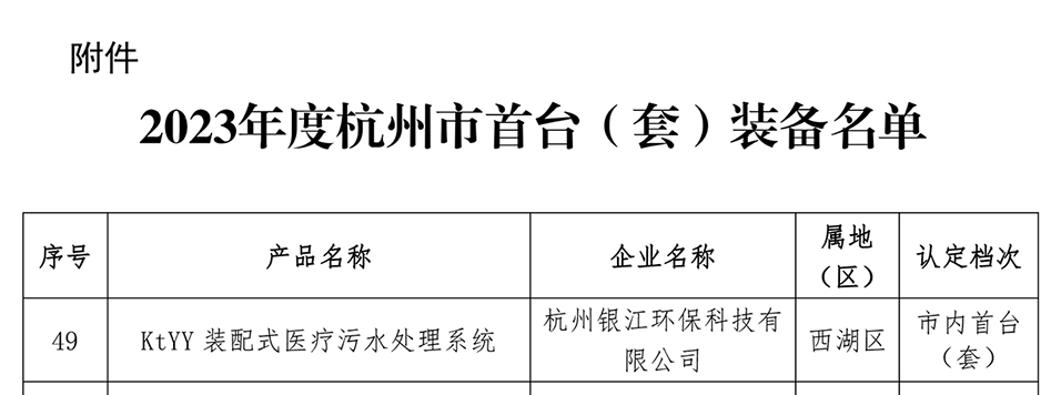 銀江環(huán)保KtYY裝配式醫(yī)療污水處理系統(tǒng)入選2023年度杭州市首臺(套)裝備。