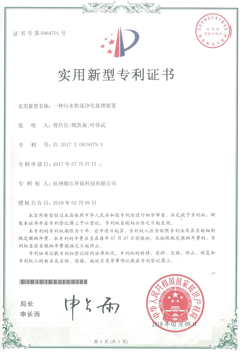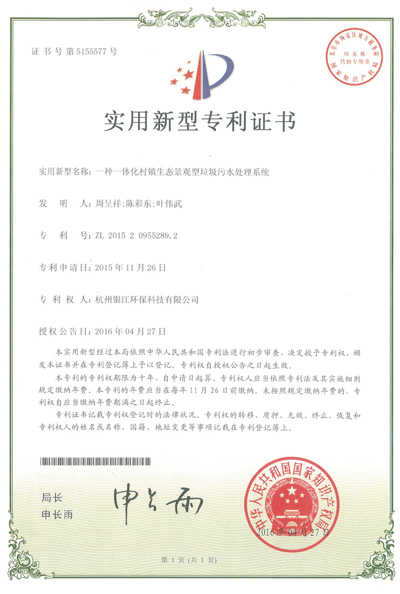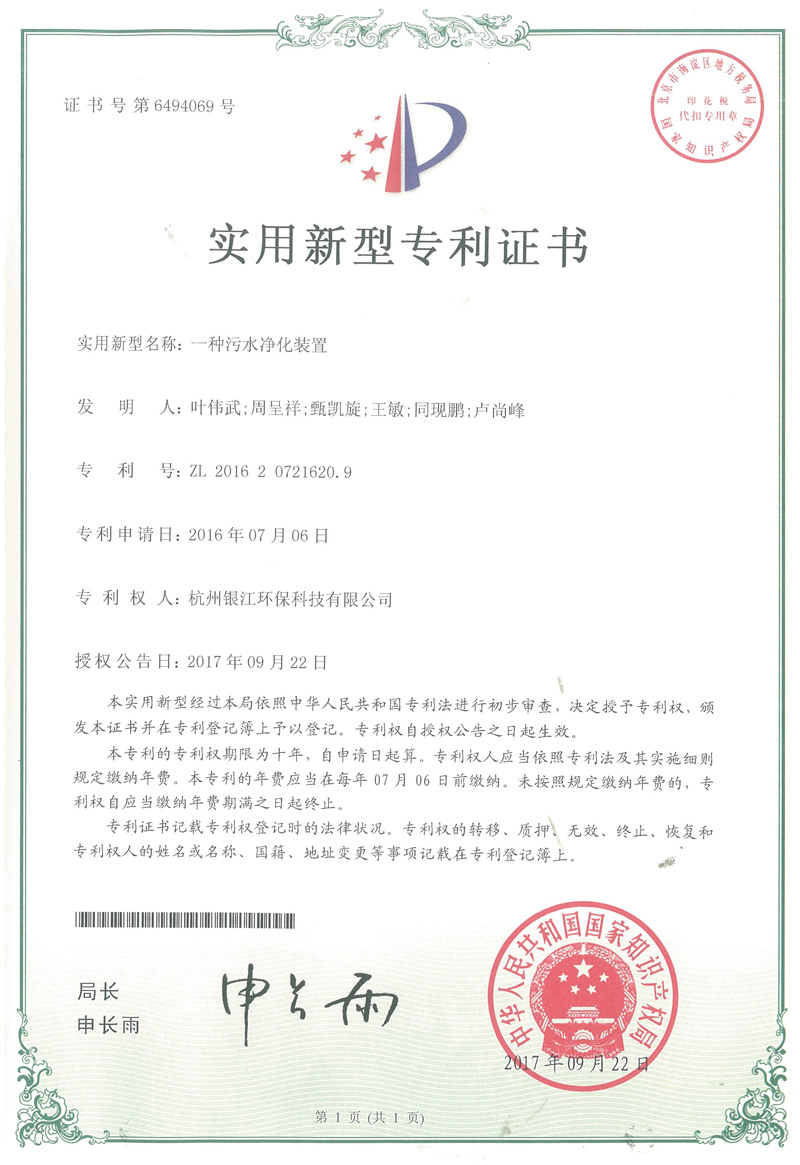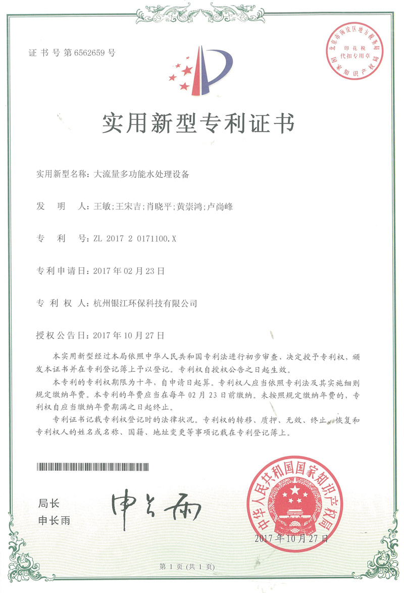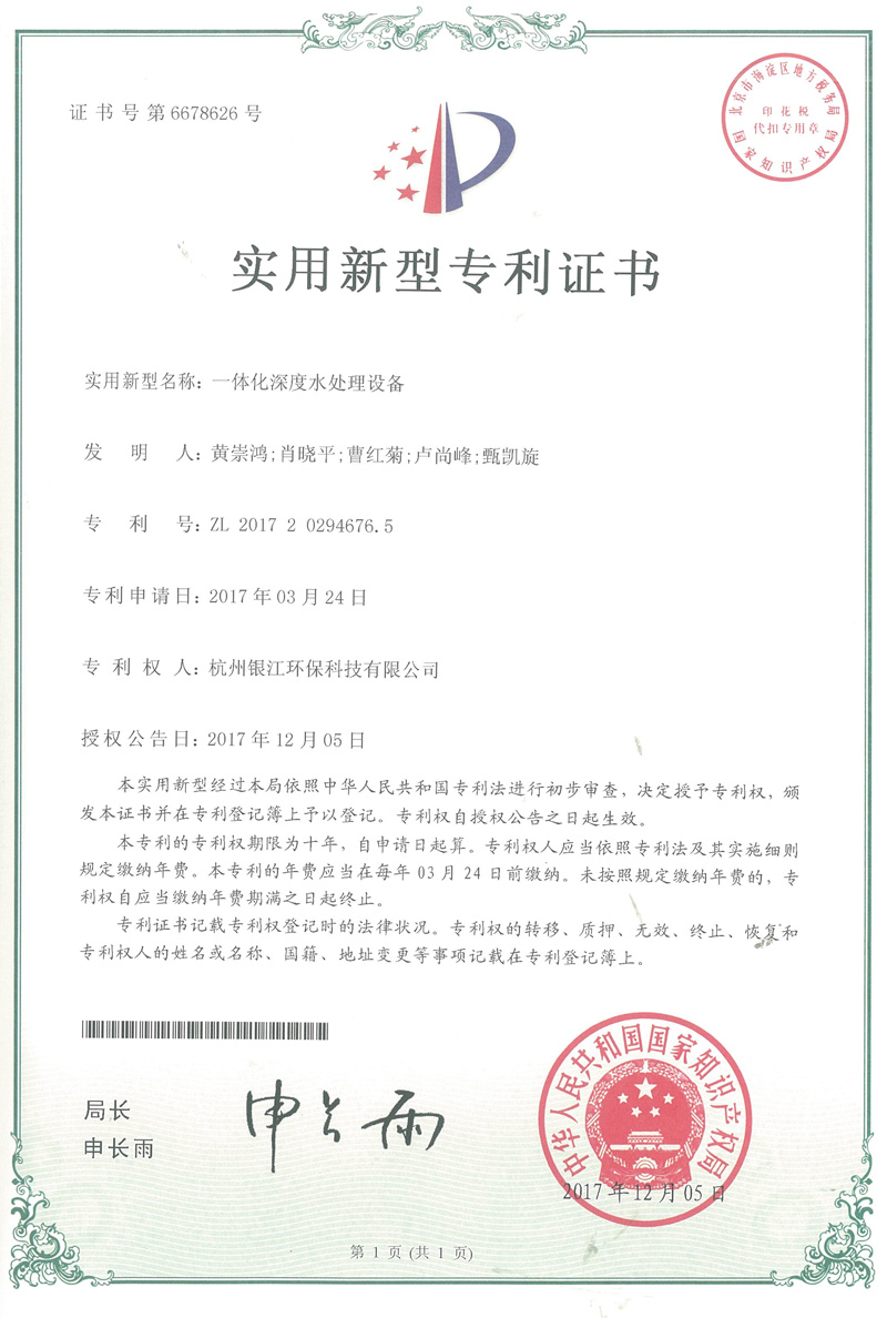 實用新型專利專注于分布式水處理解決方案